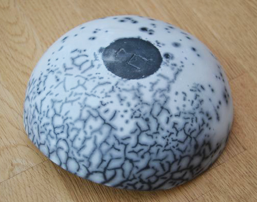 Là aussi, quelques défauts, de petites incrustations de points noirs. Peut-être des poussières qui ont volé depuis le feu près des pièces en attente de cuisson, et qu’on a oublié d’enlever avant l’enfournage. Feu qui sert à bien sécher les pièces avant l’enfournage, mais aussi à faire des grillades, quand il fait beau, ou à réchauffer la soupe quand il fait froid.