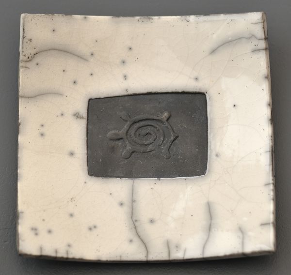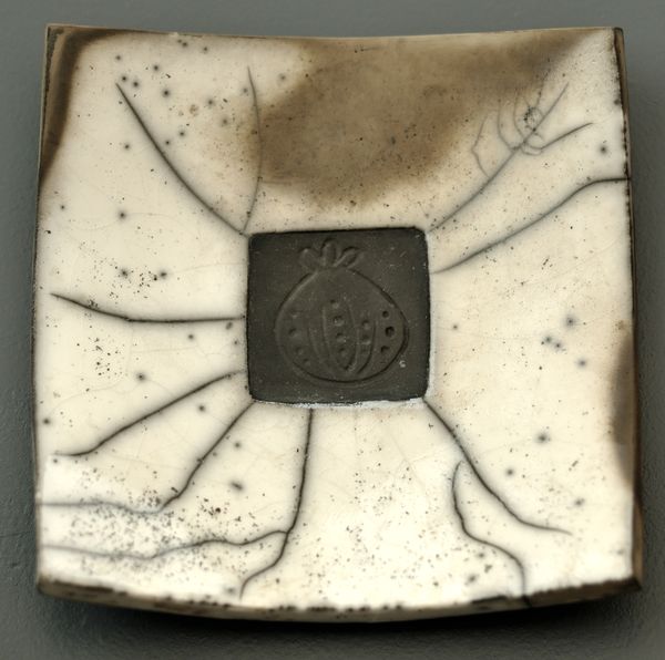 Un simple carré de terre, posé dans une assiette en biscuit, pour le mettre en forme. Un tampon au centre.