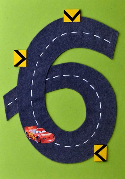J’ai découpé la route dans de la feutrine renforcée de Vlieseline, et brodé les pointillés avec un gros fil de coton.