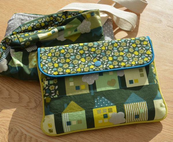 D’après le tuto de «Merci Giroflée». J’ai agrandi le patron, pour obtenir une pochette d’environ 22 cm sur 16.