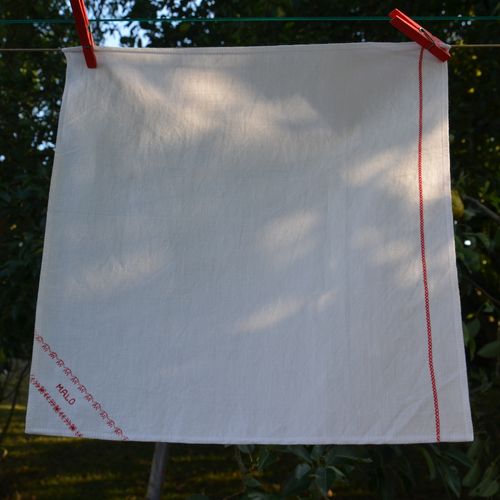 En guise d’ourlet, j’ai simplement terminé les serviettes à la surjeteuse.