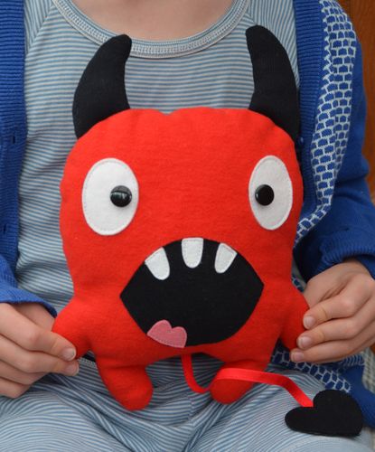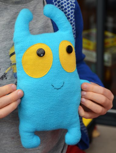 Enfin, Malo a voulu se coudre un doudou. Je ne pensais pas qu’il réussirait à négocier les courbes… mais si, il s’est vraiment bien débrouillé. J’ai juste cousu les yeux.