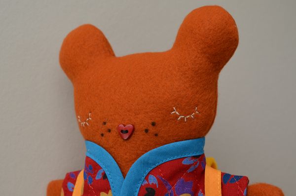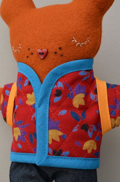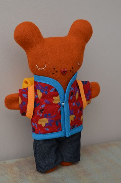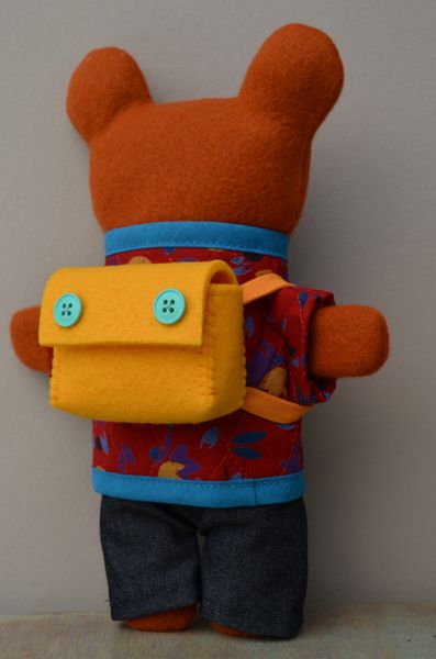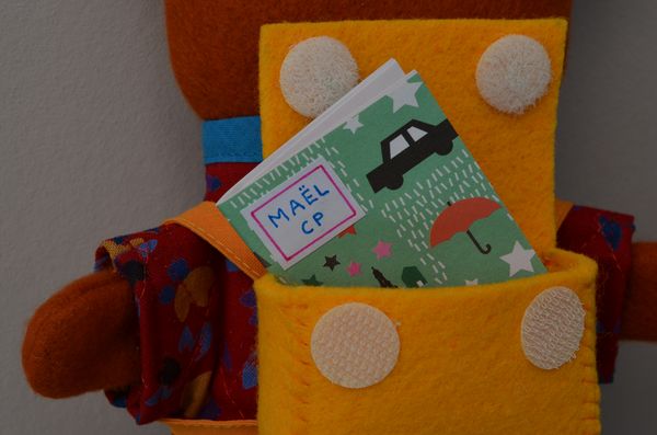 Il est classe ce doudou ! J’adore tous les petits détails : la bouche bouton, la belle veste et le cartable et même le cahier ! Incroyable ! Bravo.