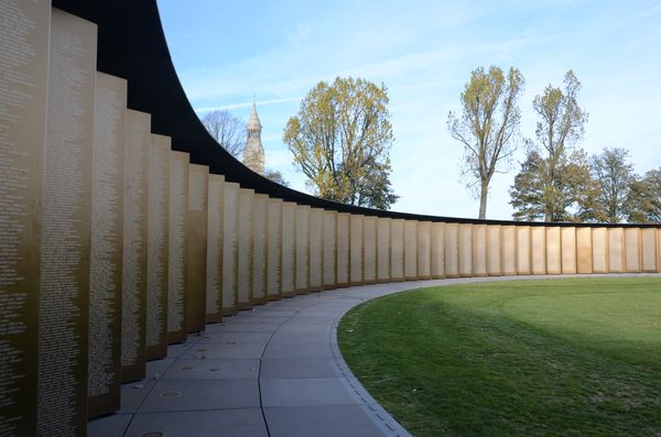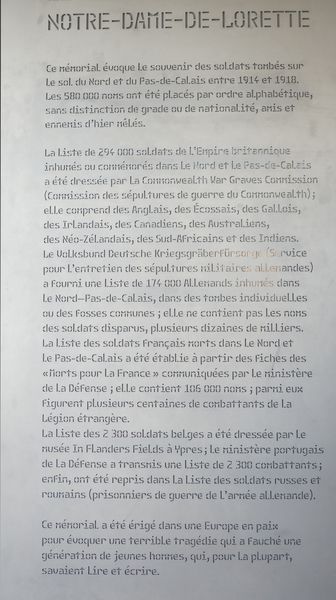 L’Anneau de la Mémoire… 580 000 nom gravés sur une succession de panneaux qui forment un immense ruban ; noms des soldats tombés dans le Nord et le Pas-de Calais, par ordre alphabétique, sans distinction de nationalité, amis et ennemis. Une invitation à réfléchir à la folie des hommes.