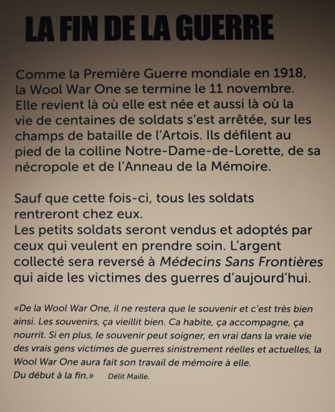 Pour la dernière fois, l’armée de laine a été exposée au Centre d’Histoire Guerre et Paix à Souchez, près de Lens, jusqu’au 11 novembre, près du mémorial de Notre-Dame de Lorette.
