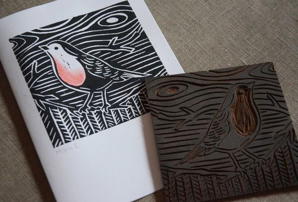 Mon deuxième essai de linogravure, d’après une idée trouvée sur le net.