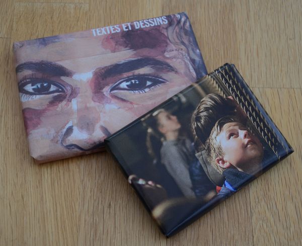 Nous avons emballé le cadeau des parents avec des pages récupérées dans journaux et magazines.