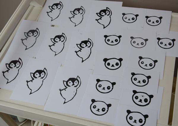Le petit pingouin est l’oeuvre de Malo, le panda celle de Maël (avec un peu d’aide pour les contours).