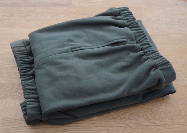 J’avoue que pour ces deux derniers, il a fallu que je me motive un peu. Depuis le début de l’année, j’en ai fait deux gris chiné, puis deux bleus, puis ces deux vert kaki… Douze poches, douze bracelets de bas de jambe, six ceintures… monotone, à la longue… Les séries, c’est moyennement passionnant.