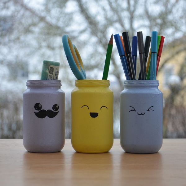 Malo s’est fait des pots à crayons, d’après une idée trouvée sur Pinterest.