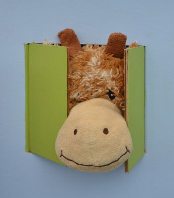 Une maison en carton pour les doudous de Maël. Gros-oeuvre fait par mamie et papy. Le toit est solidaire des deux pignons triangulaires et amovible.