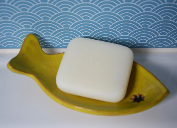 Un porte-savon en terre rouge émaillée.