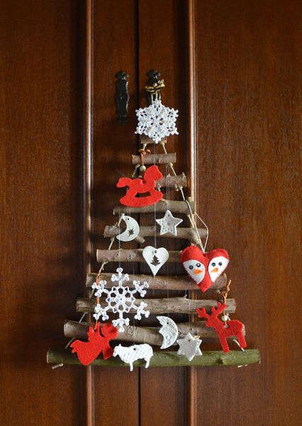 Pour rester dans l’ambiance de Noël, un sapin fait de bouts de branchages reliés par une ficelle (idée trouvée sur Pinterest).