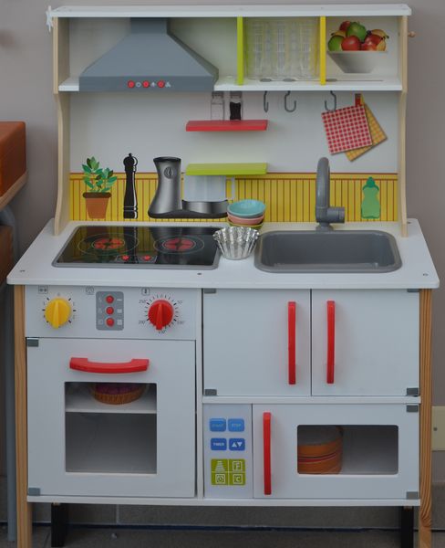 Au cours de nos balades dans le village allemand juste en face du nôtre, j’ai déniché une petite cuisine, dans un magasin qui ne vend que de la « seconde main » pour enfants, vêtements, jouets, livres, etc.