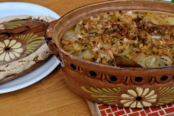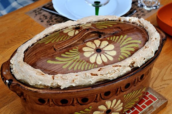 Traditionnellement, le Baekeofa est cuit dans un grand pot alsacien en terre cuite, mais une grande cocotte en fonte fait l’affaire également, ou toute autre marmite à couvercle pouvant passer au four.