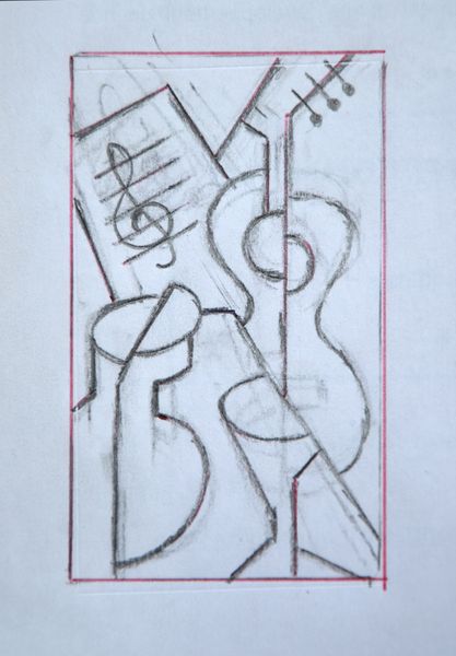 Premier essai : un dessin simplifié à partir d’un tableau peint il y a quelques années.
